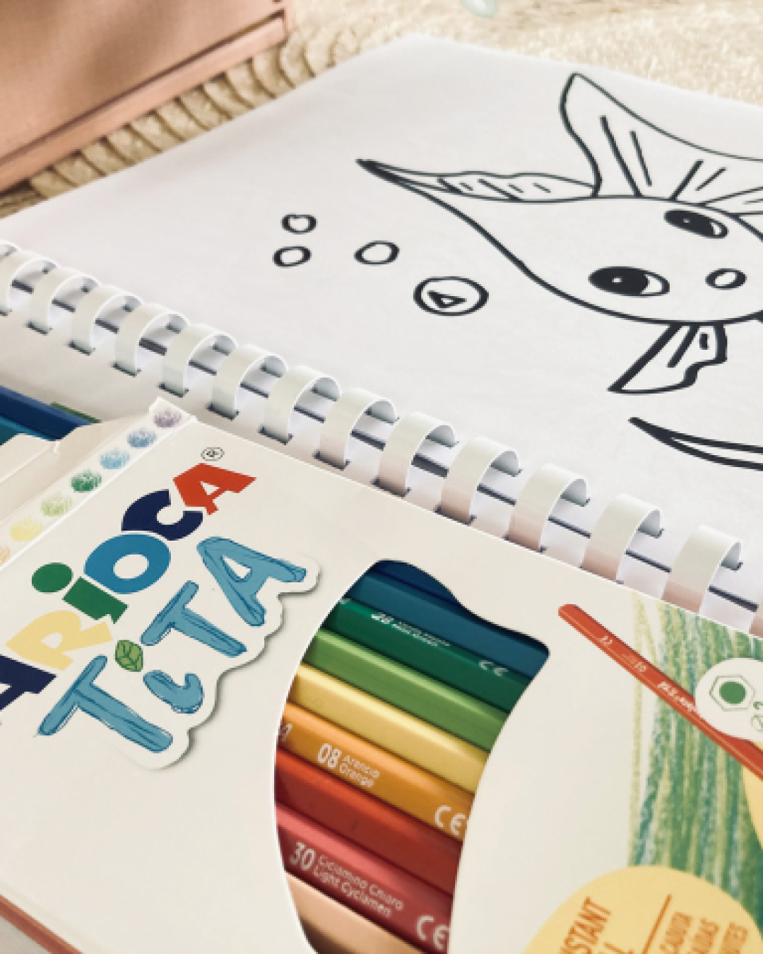 Reliure à spirale pour que le carnet reste plat pendant le coloriage (parfait pour les petites mains).