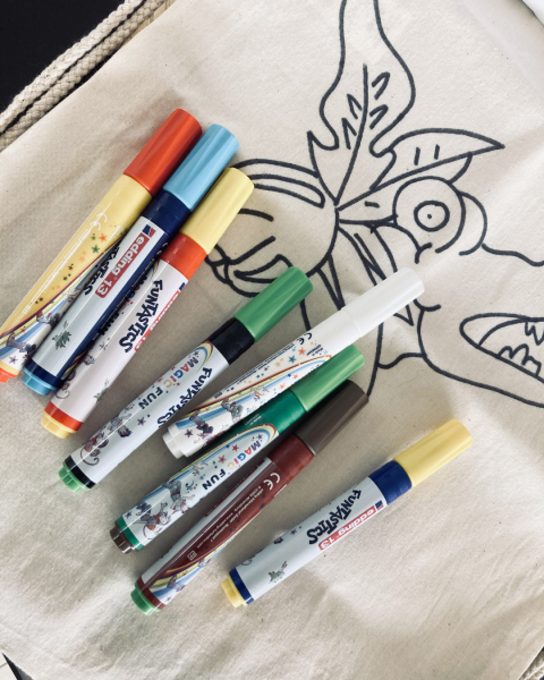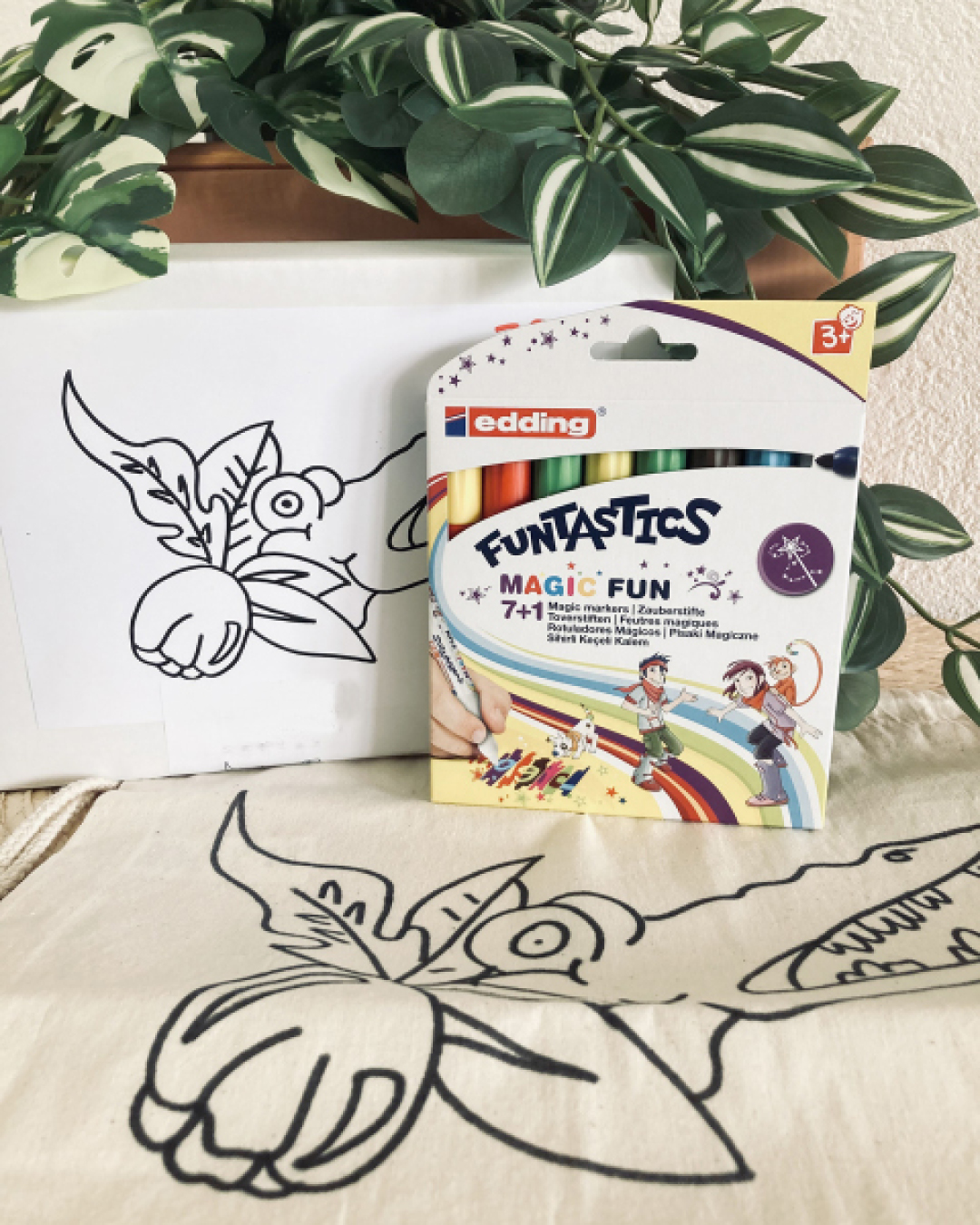 – 1 sac à cordon illustré à la main, au feutre textile indélébile